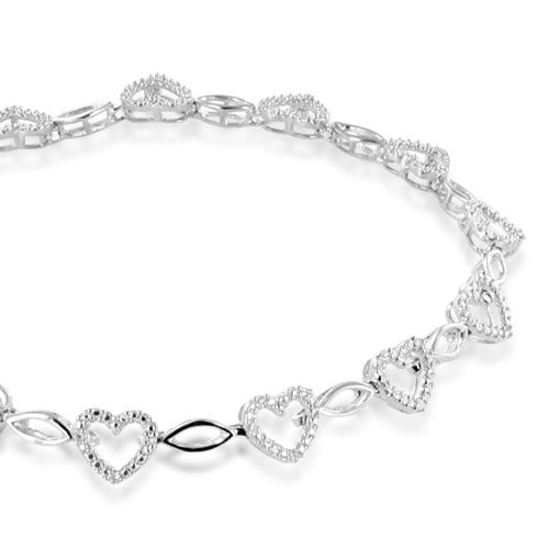 BEST BUY.. Sterling Silver Heart Shaped Diamond Bracelet -0.15 cttw - 7 inch