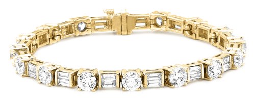 14k Yellow Gold Baguette and Round Diamond Tennis Bracelet (10 1/3 cttw, H-I Color, SI1-I2 Clarity), 7Choose a look of pure luxury with this stunning diamond tennis bracelet, offered in your choice of 14 karat white or yellow gold. It showcases a line of sparkling round and double baguette diamonds, arranged in an alternating pattern in prong and channel settings. There are 16 round and 32 baguette diamonds altogether in this radiant piece, for a total diamond weight of 10.63 carats. The mix of diamond shapes creates a subtle pattern and a beautifully distinctive look. Expertly constructed for a graceful drape, the 7-inch bracelet is finished with a tongue-in-groove clasp and safety bar..../ 14k Yellow Gold Baguette and Round Diamond Tennis Bracelet (10 1/3 cttw, H-I Color, SI1-I2 Clarity), 7" / diamond bracelet