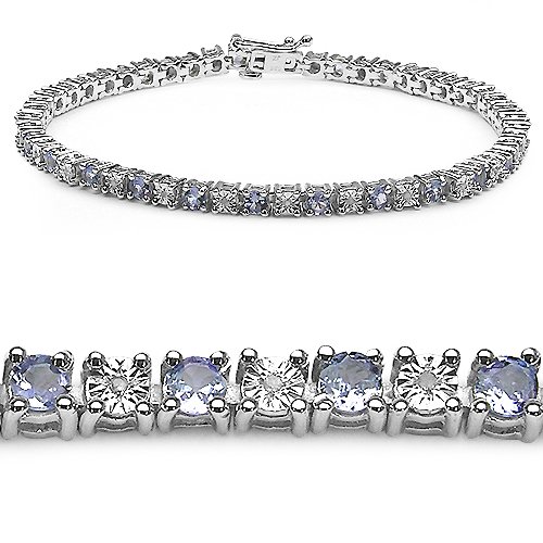 BEST BUY.. 2.70 Carat Genuine Tanzanite & White Diamond Sterling Silver Bracelet